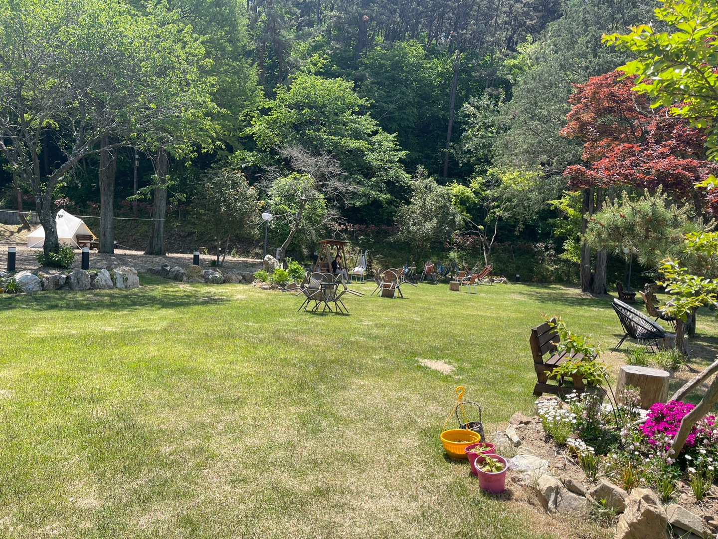 카페 마당쪽에는 해먹과 테이블이,