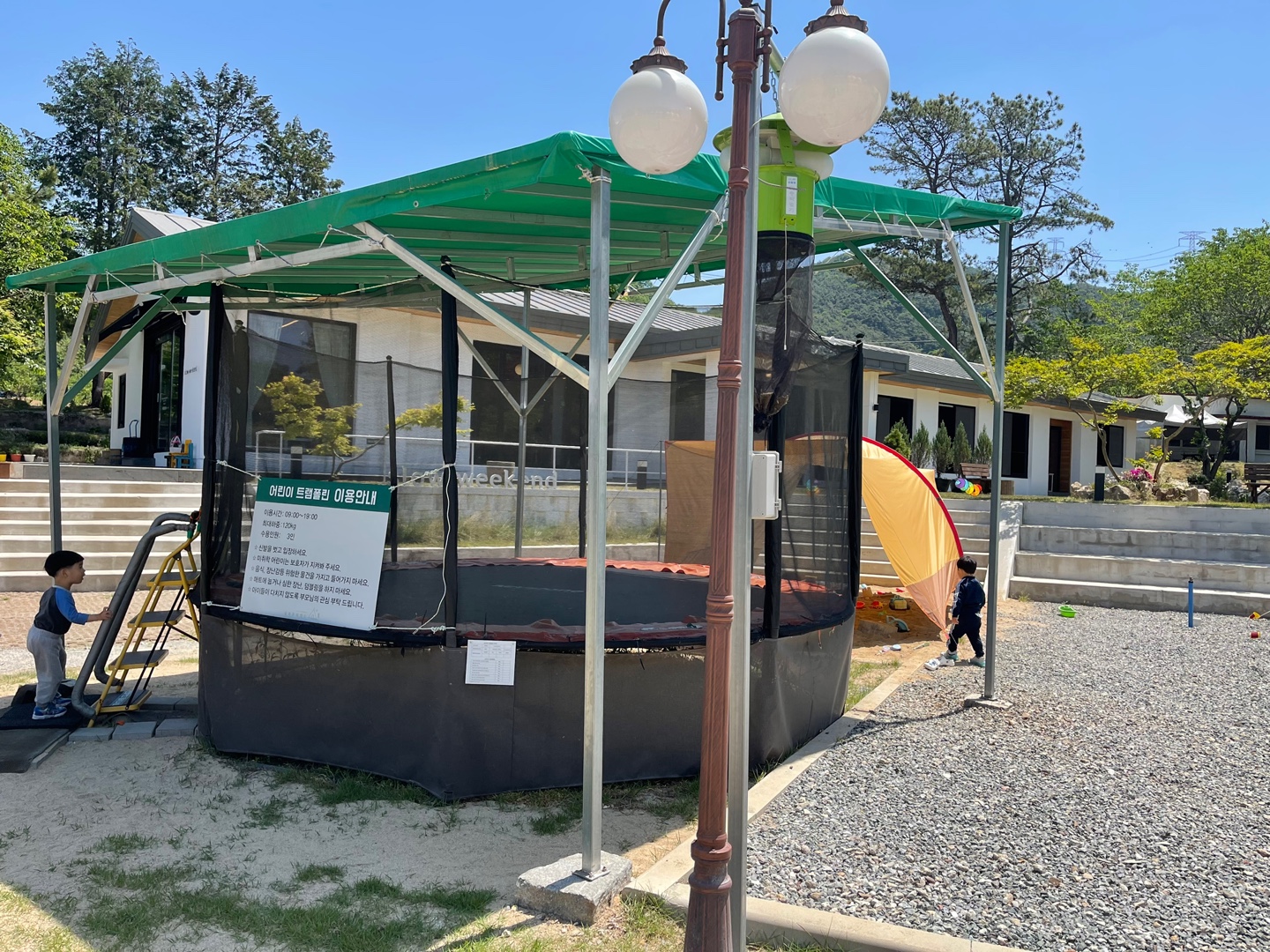 카페 앞이자 피크닉텐트 옆에는 대형 트램폴린과
