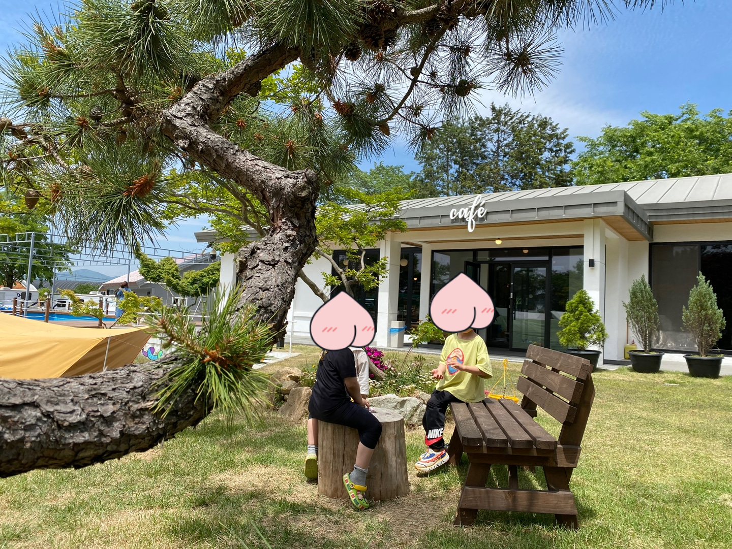 아이들은 해먹 타고 놀고 편안한 의자에 앉아 바람 솔솔 맞으며 커피한잔 하는데
